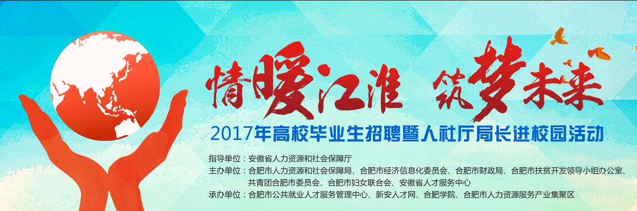 為響應(yīng)政府號(hào)召,促進(jìn)高校畢業(yè)生就業(yè),我司積極參與由安徽省人力資源和社會(huì)保障局、合肥市財(cái)政局等多家單位聯(lián)合舉辦的“情暖江淮筑夢未來”2017年高校畢業(yè)生校園招聘活動(dòng)。